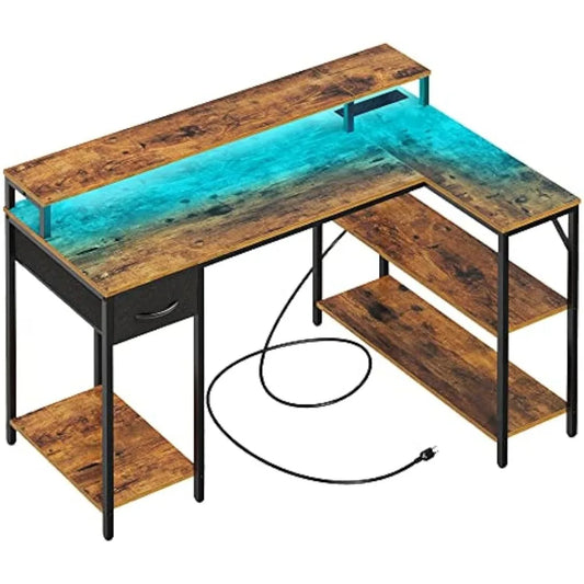 Reversible Corner Gaming Desk with LED Lights & Power Outlets