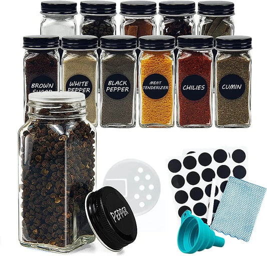 12-piece glass spice jars with labels